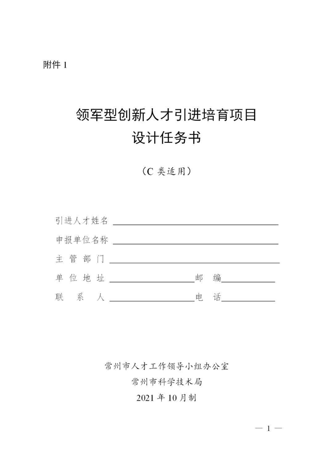 附件:領(lǐng)軍型創(chuàng)新人才引進培育項目設(shè)計任務(wù)書(C類適用)