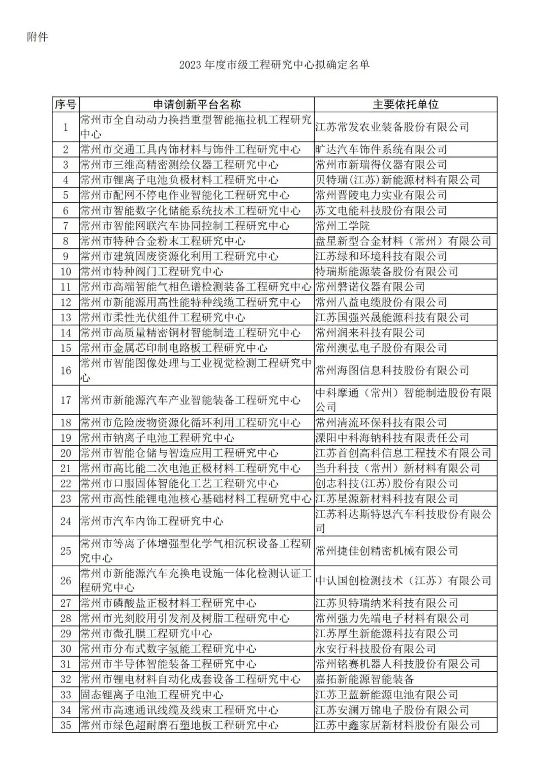 按照《市發(fā)展改革委關(guān)于開展2023年市級(jí)工程研究中心申報(bào)工作的通知》有關(guān)規(guī)定,我委組織開展了2023年市級(jí)工程研究中心申報(bào)評(píng)審工作,初步提出了2023年度市級(jí)工程研究中心擬確定名單(見附件),現(xiàn)予以公示。公示期為一周,如對(duì)公示內(nèi)容有異議,請(qǐng)?jiān)诠酒趦?nèi)以書面形式提出意見,反饋至常州市發(fā)展改革委工業(yè)和高技術(shù)發(fā)展處。書面意見請(qǐng)寫明提出異議的理由和事實(shí)依據(jù),意見提出人須寫明真實(shí)身份及聯(lián)系方式等。